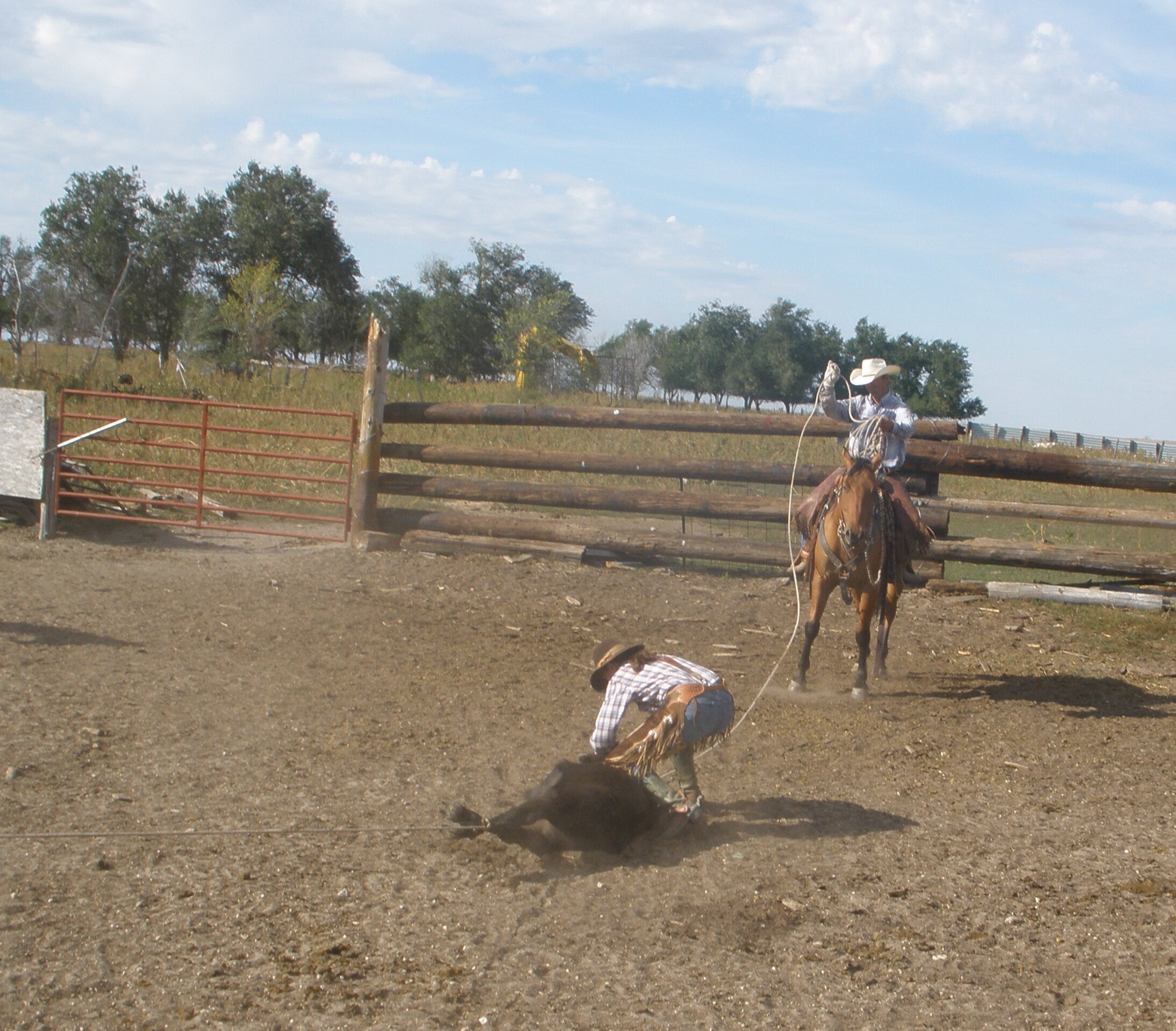 Brandy switching the head rope to the feet