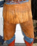 I finally found something to make out of that deerskin you gave me. This is as close as I can figure out how to builds a pair of armita’s, which were the original chinks. Odd looking, but cooler in the summer and I really don’t need to worry about brush.