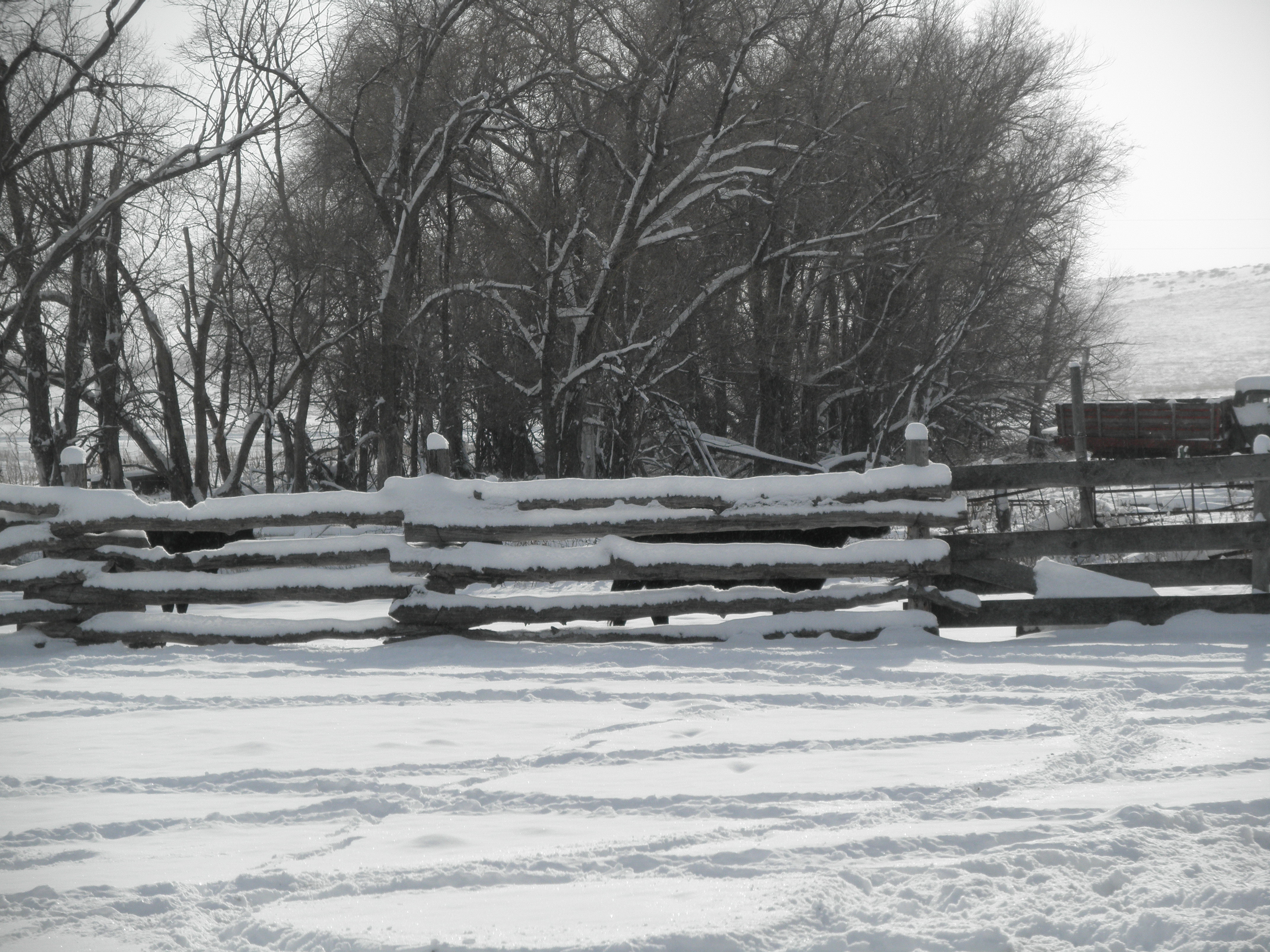 Previous Image Next Image OLYMPUS DIGITAL CAMERA snow covered poles and post tops looking south in the big corral