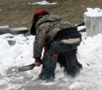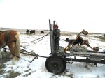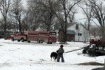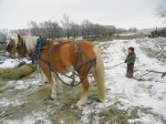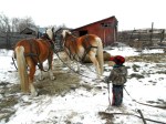 Grampa had a helper today to do chores. Hope brought Sam and Gus out yesterday and stayed over for a spell. So I found some old chaps of one of Gus’s uncles or his dad’s to help keep his legs warm and we went chorin’. He was a real big help!