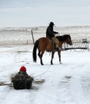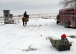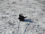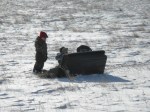 Just been feeding and frittering away the time lately seems like. Went over and helped a neighbor work some cows the other day and when I got home the boys were playing outside I so I hooked the end of my looonnnngggg rope to the end of about 10 feet of twine tied to the black plastic calf sled and drug it with Beaver. He objected, but I won out. Found out when I went to unhook it by pulling it to me while setting on his back, he can really back up! Video of a little of it on Facebook. Here’s pics of me and the boys sleddin’.