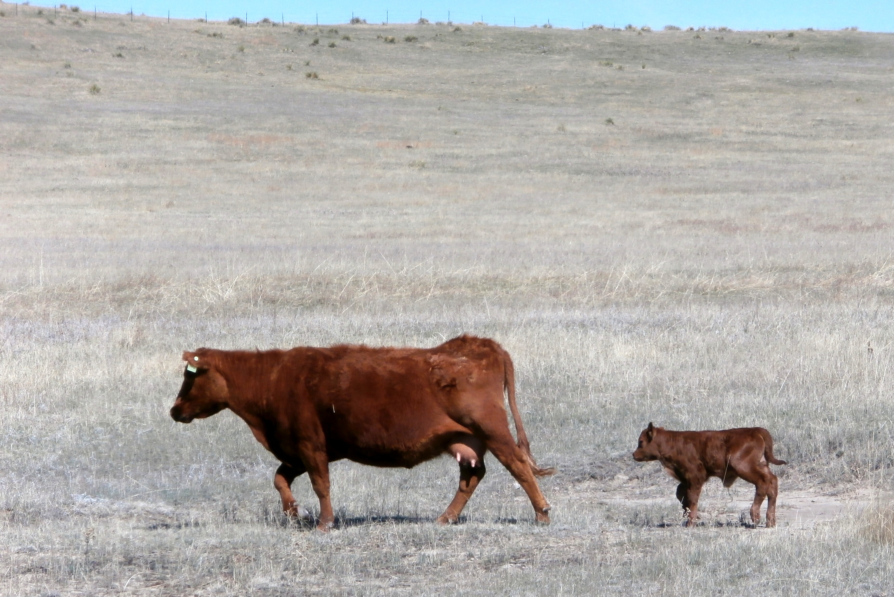 Old cow and her frisky calf