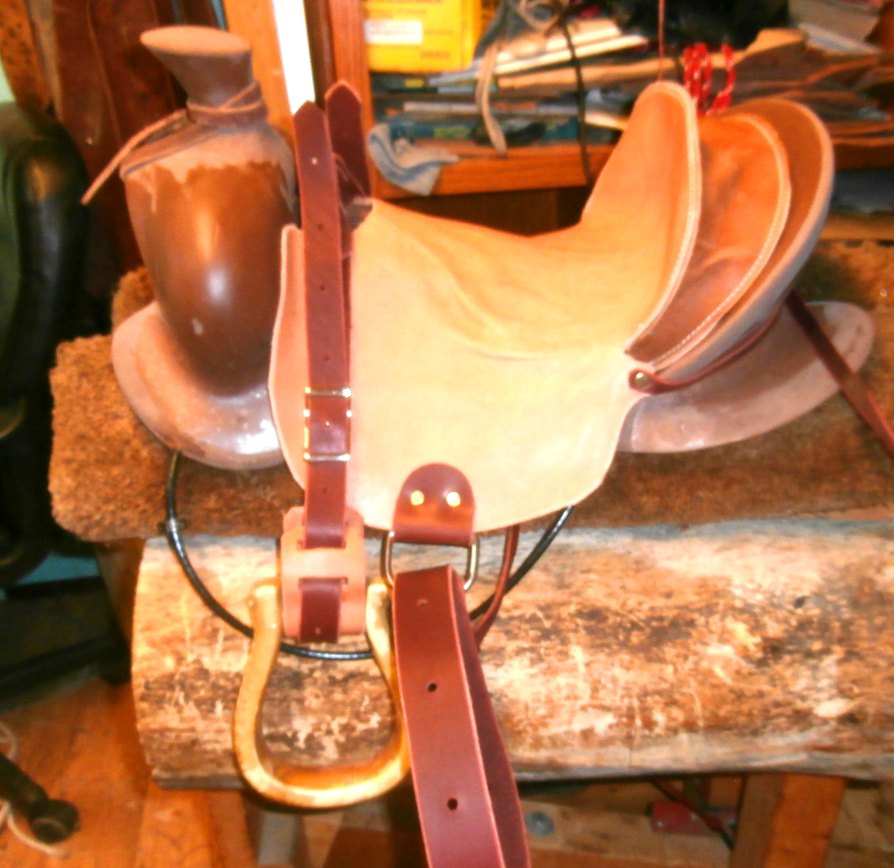 Insert strapped in front around horn and tied behind cantle