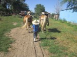 There is a clinic going on up at Brad’s, so me and the boys went up for awhile the other morning. Bridgette came out and rode along for the first day, where they were starting the colts. She enjoyed it and the boys found some other kids to play with.