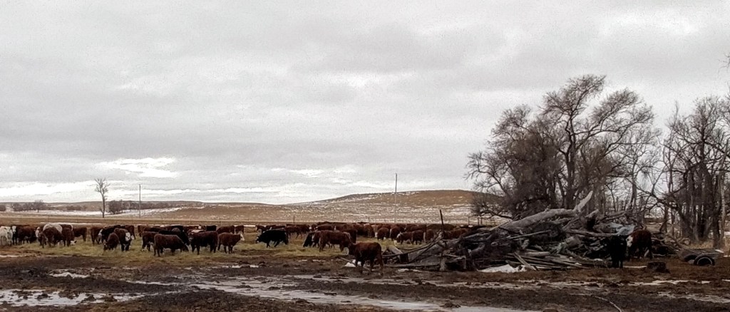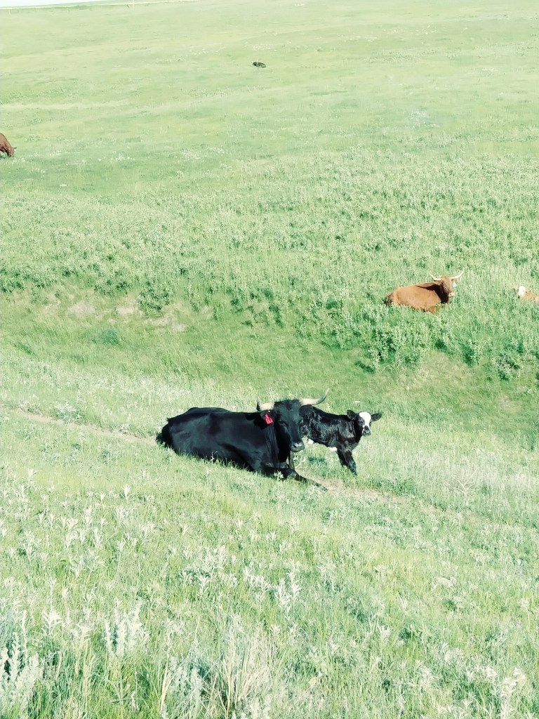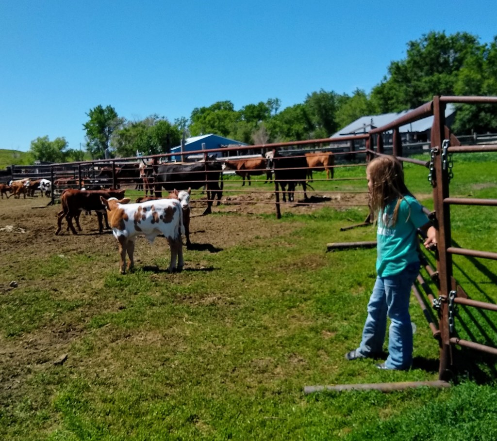 Our years really starts in late winter, early spring… when we start getting new calves. Cows have to be checked to see if any need assistance having their baby, especially if they are first time mothers. Known as First calfers. They are bred to light birthweight bulls so they will have a smaller calf, as the cows are smaller and haven’t reached their full size. If one does need assistance, they are either caught in the pasture by rope and saddle horse, or driven to the corral and put in a chute or shed and then caught and the calf helped to be born. At the end of calving season, comes the branding where the new calves, who are much bigger now, get inoculation for diseases that plague them. Black Leg is the most common. They get the brand of the ranch they belong to and then are free to go with their mama until late summer or fall. Then they are gathered again and all the calves get a booster shot to keep their immune system high to help them from getting sick. After another month or three, in late fall to early winter, they are either weaned off from their mothers and shipped or driven to the home corral, or sent to a sale ring to be sold to new owners. After that it is winter and the cows must be checked for pregnancy and then turned into pastures that have lots of saved up grass or fed hay or grain or a combination of all three or two. And before you know it, it’s another new year and time to start again!