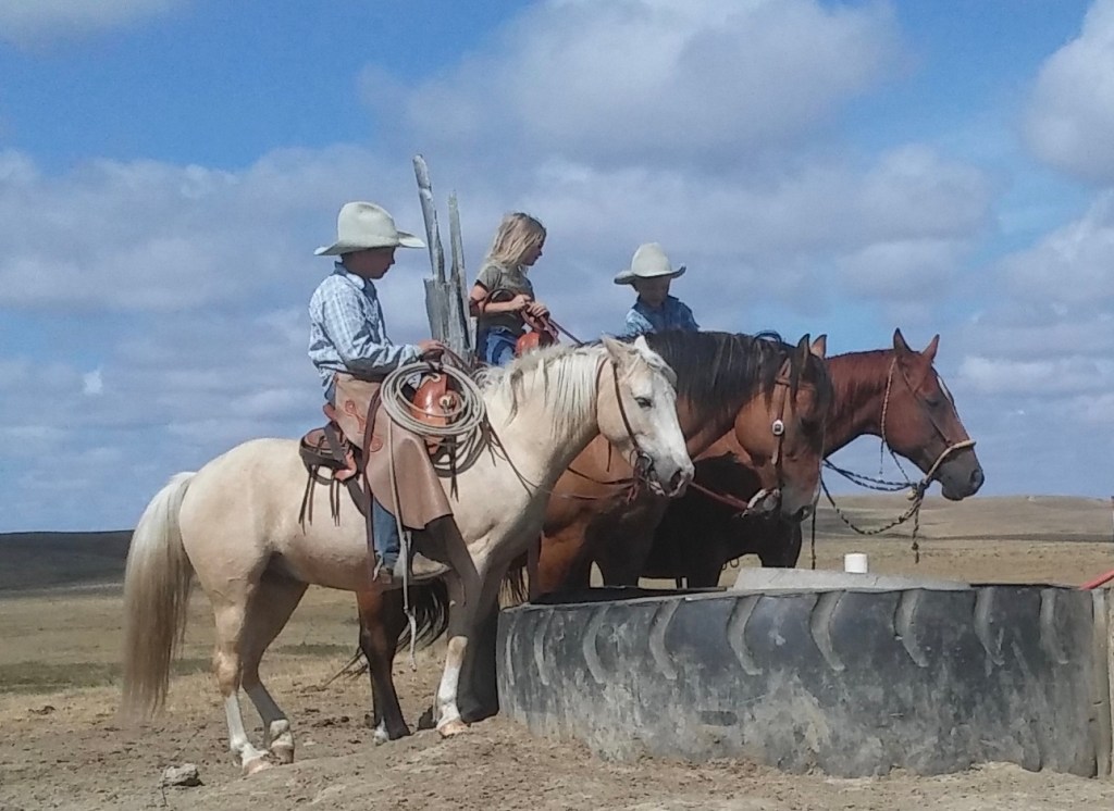 Since this ranches inception, horses have been an integral part of it. Draft horses were used to supply the power for any task to big for man’s muscles. Pulling wagons and plows, mowing machines and stackers. Saddle horses were used to go from one place to another, to work the livestock and of course, just for the fun of it! We still use horses many days of the years. For many years I used a team and wagon or sleigh to feed hay to the cows in winter. Oh, I had the use of a tractor, but preferred the horses. They have the ability to listen and can be controlled by voice, if trained to it. Not tractors. I could power them by feeding them on hay and oats I raised. I couldn’t raise gasoline or diesel fuel for a tractor. I still enjoy driving a well broke team. For fencing they are ideal, as they can walk along and you can have all your needed equipment in the wagon, in easy reach. They will go or stop on a voice command. When working cattle, from the back of a well trained cow horse, you have a decided advantage as you are taller and bigger and faster than any bovine you are trying to get to do what you want them to. A smart cow horses will do most of it’s own thinking when sorting a cow off from it’s friends. Just show the horses which cow you want and set down and hang on! For many years, I tried to train a new horse every year, because a horse, unlike a car or pickup, appreciates in value for many years as it gets older and wiser. So I had a willing friend to train and then sell to someone else who didn’t have the time, energy or skill to train one. I could make a little pocket money and be doing my work as I trained them. Now that we have grandkids, most horses don’t get sold from this ranch. The littlest kids ride the oldest, most trained horses, when they ride. As they grow and learn, they ride horses with a little less training, and they learn to train the horse. It is a great system. No one ever gets on a horse that they can not control. The old story about cowboys putting dudes on an unbroken horse, to see them get bucked off is a myth. Based on a small truth perhaps, but I have never seen it in my life. And we don’t allow people on our horses who would harm them from neglect or abuse. When the work is done at noon or in the evening, the horses are fed and watered before the rider. Horses! Gods most noble creature.